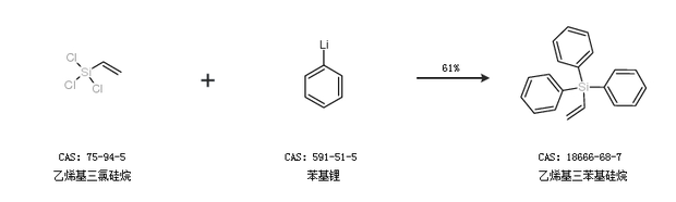 2.通過乙烯基三氯硅烷和苯基鋰合成乙烯基三苯基硅烷,收率約61%;
