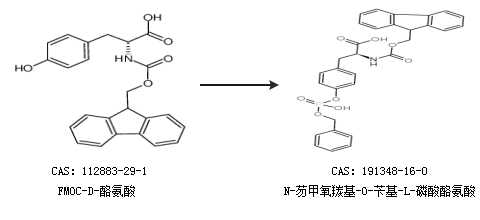 1.通過(guò)FMOC-D-酪氨酸合成N-芴甲氧羰基-O-芐基-L-磷酸酪氨酸