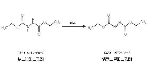 1.通過肼二羧酸二乙酯合成偶氮二甲酸二乙酯,收率約86%;