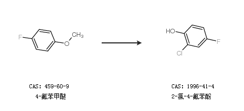 2.通過4-氟苯甲醚合成2-氯-4-氟苯酚