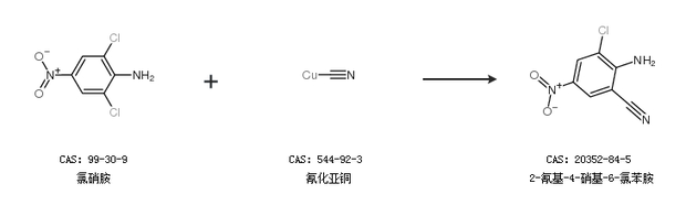 1.通過氯硝胺和氰化亞銅合成2-氰基-4-硝基-6-氯苯胺
