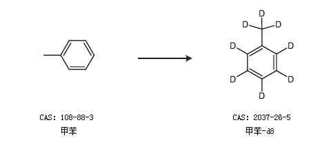英文別名 deuterated toluene;Perdeuteriotoluene;TOLUENE-D8;Benzene-d5,methyl-d3;p-xylene-d10;OCTADEUTEROTOLUENE;Perdeuterated toluene;