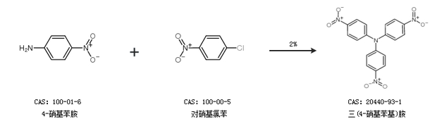2.通過4-硝基苯胺和對硝基氯苯合成三(4-硝基苯基)胺,收率約2%;