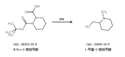 1.通過N-Boc-2-哌啶甲酸合成1-甲基-2-哌啶甲醇,收率約99%;