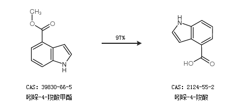 2.通過吲哚-4-羧酸甲酯合成吲哚-4-羧酸,收率約97%;