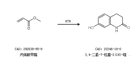 2.通過丙烯酸甲酯合成3,4-二氫-7-羥基-2(1H)-喹啉酮,收率約67%;