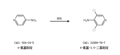 1.通過(guò)4-氨基吡啶合成4-氨基-3,5-二氯吡啶,收率約95%;