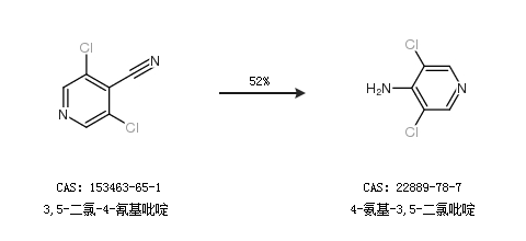 2.通過(guò)3,5-二氯-4-氰基吡啶合成4-氨基-3,5-二氯吡啶,收率約52%;