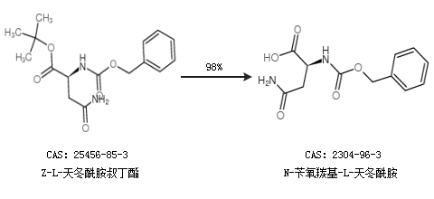 2.通過Z-L-天冬酰胺叔丁酯合成N-芐氧羰基-L-天冬酰胺,收率約98%;