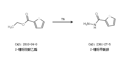 2.通過2-噻吩羧酸乙酯合成2-噻吩甲酰肼,收率約7%;