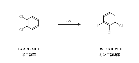 1.通過鄰二氯苯合成2,3-二氯碘苯,收率約72%;