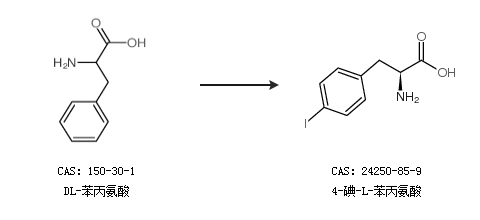1.通過(guò)DL-苯丙氨酸合成4-碘-L-苯丙氨酸