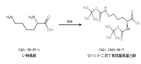1.通過L-賴氨酸合成(S)-2,6-二叔丁氧羰基氨基己酸,收率約98%;