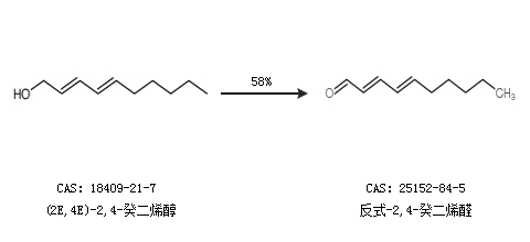 1.通過(guò)(2E,4E)-2,4-癸二烯醇合成反式-2,4-癸二烯醛,收率約58%;
