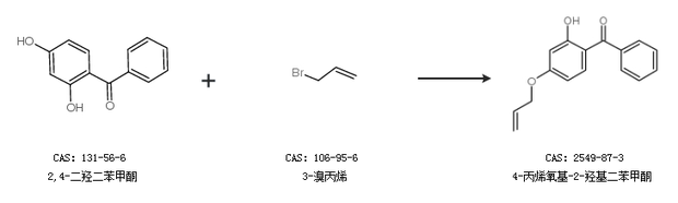 1.通過(guò)2,4-二羥二苯甲酮和3-溴丙烯合成4-丙烯氧基-2-羥基二苯甲酮