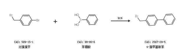 2.通過對溴溴芐和苯硼酸合成4-溴甲基聯(lián)苯,收率約91%;