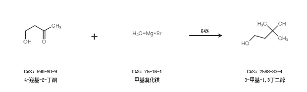 1.通過4-羥基-2-丁酮和甲基溴化鎂合成3-甲基-1,3丁二醇,收率約64%;