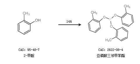 2.通過2-甲酚合成亞磷酸三鄰甲苯酯,收率約14%;