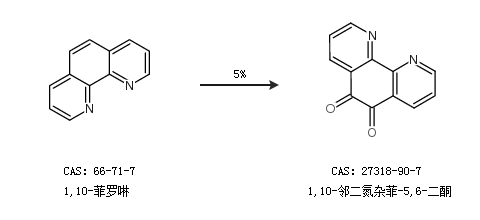 2.通過1,10-菲羅啉合成1,10-鄰二氮雜菲-5,6-二酮,收率約5%;