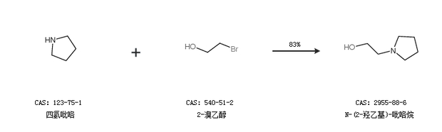 1.通過四氫吡咯和2-溴乙醇合成N-(2-羥乙基)-吡咯烷,收率約83%;