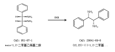 1.通過(guò)meso-1,2-二苯基乙烯基二胺合成(1S,2S)-(-)-1,2-二苯基乙二胺,收率約84%;