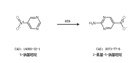 1.通過5-硝基嘧啶合成2-氨基-5-硝基嘧啶,收率約65%;