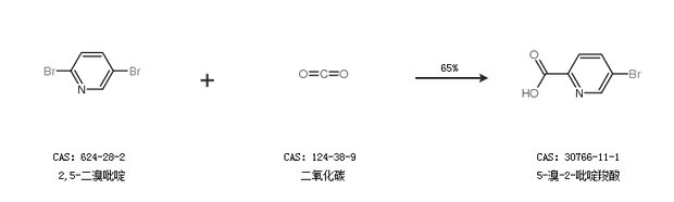 1.通過(guò)2,5-二溴吡啶和二氧化碳合成5-溴-2-吡啶羧酸,收率約65%;