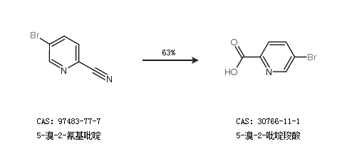 2.通過(guò)5-溴-2-氰基吡啶合成5-溴-2-吡啶羧酸,收率約63%;