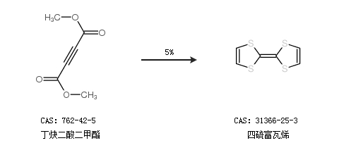 1.通過(guò)丁炔二酸二甲酯合成四硫富瓦烯,收率約5%;
