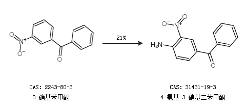 2.通過(guò)3-硝基苯甲酮合成4-氨基-3-硝基二苯甲酮,收率約21%;