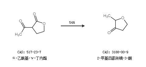1.通過(guò)α-乙?;?γ-丁內(nèi)酯合成2-甲基四氫呋喃-3-酮,收率約54%;