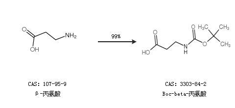 1.通過(guò)β-丙氨酸合成Boc-beta-丙氨酸,收率約99%;
