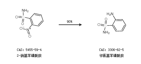 1.通過2-硝基苯磺酰胺合成鄰氨基苯磺酰胺,收率約90%;