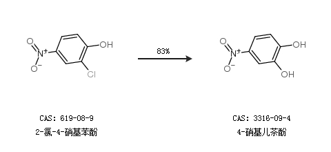 1.通過2-氯-4-硝基苯酚合成4-硝基兒茶酚,收率約83%;
