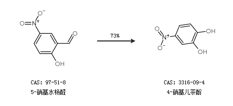 2.通過5-硝基水楊醛合成4-硝基兒茶酚,收率約73%;