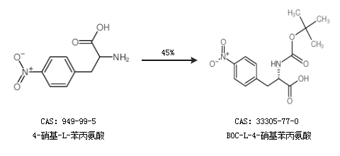 2.通過4-硝基-L-苯丙氨酸合成BOC-L-4-硝基苯丙氨酸,收率約45%;