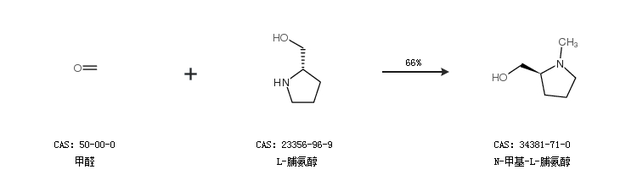 1.通過甲醛和L-脯氨醇合成N-甲基-L-脯氨醇,收率約66%;