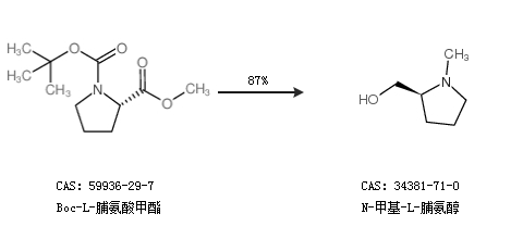 2.通過Boc-L-脯氨酸甲酯合成N-甲基-L-脯氨醇,收率約87%;