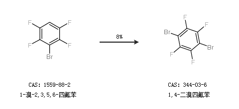 2.通過1-溴-2,3,5,6-四氟苯合成1,4-二溴四氟苯,收率約8%;