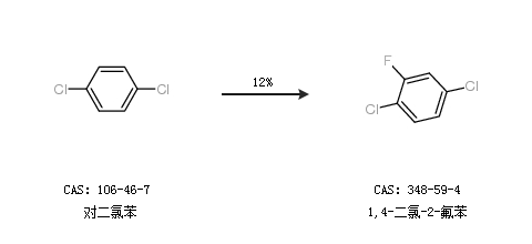 2.通過(guò)對(duì)二氯苯合成1,4-二氯-2-氟苯,收率約12%;