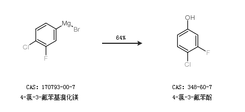 1.通過(guò)4-氯-3-氟苯基溴化鎂合成4-氯-3-氟苯酚,收率約64%;