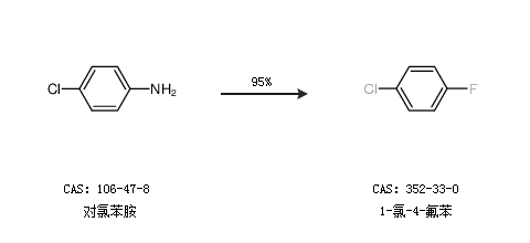 1.通過(guò)對(duì)氯苯胺合成1-氯-4-氟苯,收率約95%;