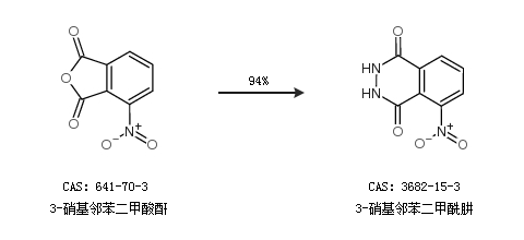 1.通過(guò)3-硝基鄰苯二甲酸酐合成3-硝基鄰苯二甲酰肼,收率約94%;