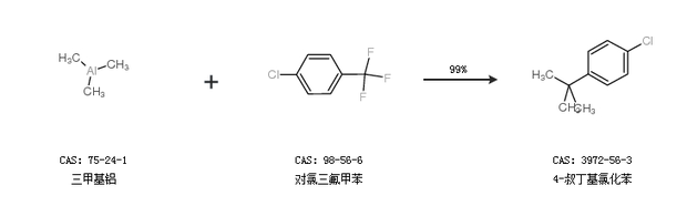 2.通過三甲基鋁和對氯三氟甲苯合成4-叔丁基氯化苯,收率約99%;