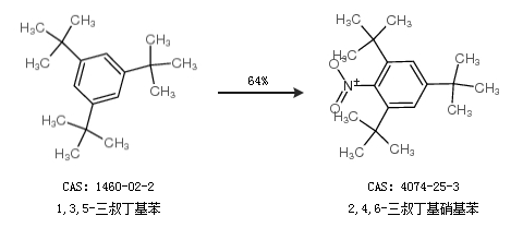 1.通過1,3,5-三叔丁基苯合成2,4,6-三叔丁基硝基苯,收率約64%;