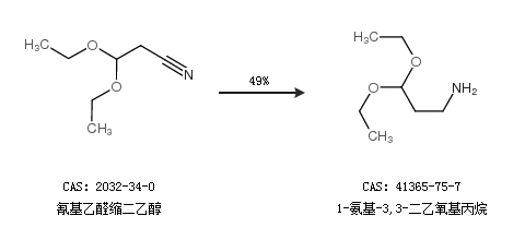 2.通過氰基乙醛縮二乙醇合成1-氨基-3,3-二乙氧基丙烷,收率約49%;