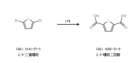 2.通過2,5-二溴噻吩合成2,5-噻吩二羧酸,收率約17%;