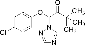 三唑二甲酮,粉銹寧,百理通,1-(4-氯苯氧基)-3,3-二甲基-1-(1,2,4-三唑-1-基)-2-丁酮,多環(huán)唑可濕性粉劑,唑菌酮,百菌酮,百里通