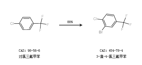 1.通過對氯三氟甲苯合成3-溴-4-氯三氟甲苯,收率約88%;