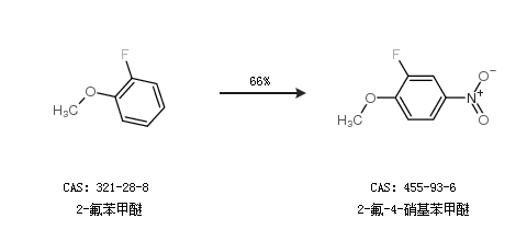 2.通過(guò)2-氟苯甲醚合成2-氟-4-硝基苯甲醚,收率約66%;